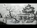 How To Draw Winter Season Village Scenery With Pencil Sketch Youtube