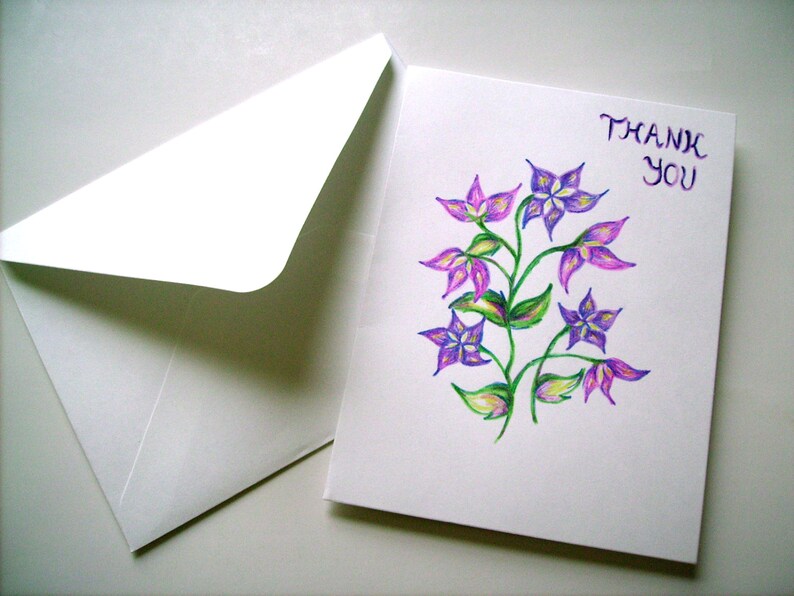 Hand Drawn Thank You Card Blank Card Greeting Card Floral Etsy