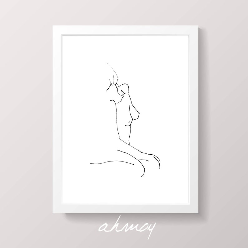 Simple Nude Line Pencil Drawing Female Body Figure Sketch Etsy